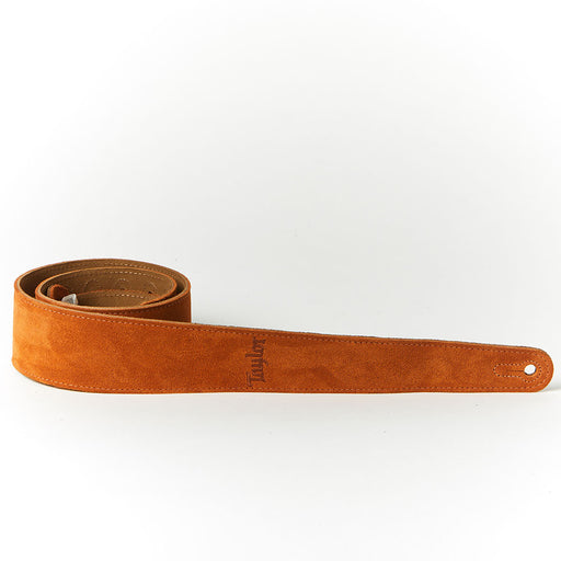 Taylor premium suede guitar strap with embroidered Taylor logo. Honey Gold. Made in Canada.