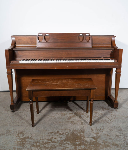 View full detailsStory & Clark Upright Piano Satin Oak - Console Upright Piano - Serial No. 616992 This vintage Story & Clark upright piano is a classic c...