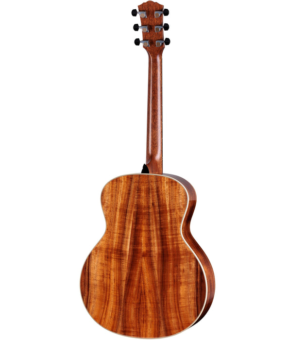 Designed by Andy Powers to produce a new voice rich with seasoned warmth and power, the new Gold Label 814e Koa introduces players to a new kind of sound inspired by the classic sounds of the vintage era. This model features a new body shape we're calling the Super Auditorium, which resembles Taylor's Grand Auditorium but with slightly wider contours that help coax out more volume and greater low-end presence. Hawaiian koa back and sides paired with a torrefied Sitka spruce top generate stunning midrange power and richness complemented by warmth and depth usually only found in older, more played-in guitars. Inside, a fanned variant of Taylor's V-Class bracing helps add even more volume and sustain while maintaining focus and clarity even at the highest volumes. A new long-tenon neck joint adds to the litany of innovations, improving sonic transfer for greater resonance and easy adjustability. The Gold Label 814e Koa sports a striking appointment package headlined by Taylor's new Continental inlays, a new pickguard design, a Honduran rosewood bridge, grained ivoroid trim, and antique chrome Gotoh 510 tuners with ebony buttons, while a full-body gloss showcases koa's natural highlights and variegation. This model ships with LR Baggs Element VTC electronics and a deluxe hardshell case with a British Cocoa exterior.