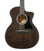 Back and sides of layered Big Leaf maple are paired with a solid Lutz spruce top in this limited-edition acoustic-electric, yielding a powerful voice that remains clear and balanced across the frequency spectrum. With signature Taylor playability thanks to the slender neck profile and accommodating body shape, this versatile Grand Auditorium offers an enticing mix of comfort, rich tone and striking looks. A gloss-finish body highlights black back and sides and a TransGrey top, with a black, satin-finish neck. Appointments include white binding with black/white/black top purfling; a single-ring rosette in Italian acrylic and matching Small Diamond fretboard inlays; a black pickguard; and satin black tuners. It includes ES2 electronics.