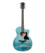 This limited-edition cutaway Grand Auditorium 214ce DLX LTD features layered Big Leaf maple back and sides and a solid Lutz spruce top, in a two-tone color treatment of black and trans blue. The versatile GA shape serves up full-range, punchy tone with a high volume ceiling. The striking visual aesthetic combines black back, sides and neck, a trans blue top, a full-gloss body and satin-finish neck. Other standout appointments include white binding with black/white/black top purfling; a single-ring rosette in Italian acrylic and matching Small Diamond fretboard inlays; a black pickguard; and satin black tuners. It includes ES2 electronics.