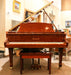 USED Bachendorff 6' Grand Piano with matching bench in high polished Mahogany finish. Piano features an incredible tone and wide range of volume from booming bass to soft champagne glass highs in the treble end. The action is consistent from bottom to top; tone is warm rounded and beautiful; the overall timbre makes playing this piano a real treat. Designed as a highly attractive, great performing instrument, this piano is ideally situated for a position of high visibility: public lobby area, reception space, music venue, stage, lounge, bank lobby, music room, church, studio and living room. Comes complete with FREE local delivery and tuning.