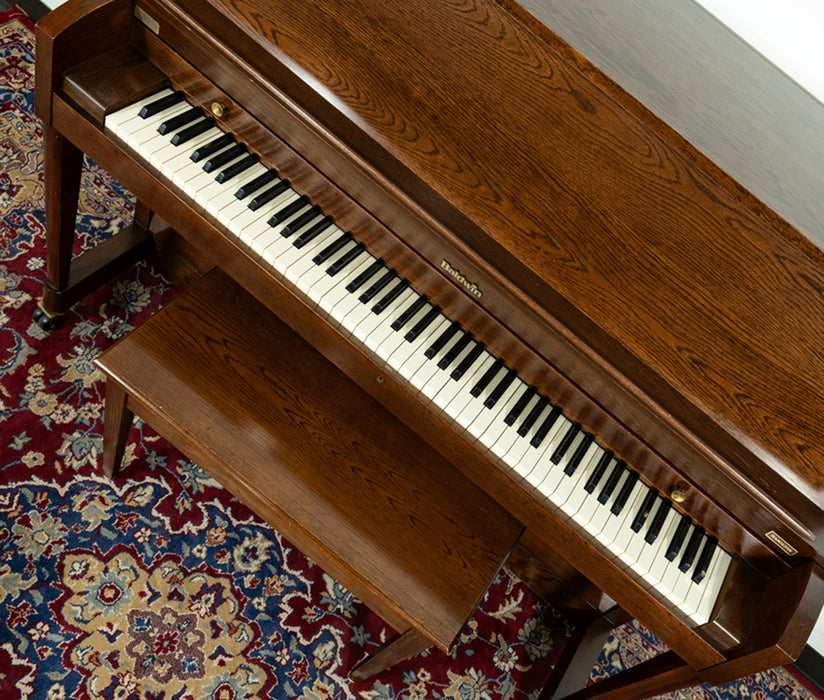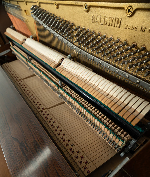 The Baldwin 243 studio is the single most popular piano model that Baldwin has ever produced. It has been a favorite piano model among home pianists, teachers, music departments of colleges, school systems, and houses of worship for many years. This Baldwin Model 243 features a 47″ height that allows for a larger soundboard and a longer string length equivalent to a 5'8″ grand piano. This instrument has a big sound and projection and it is a wonderful choice for any piano player. This Baldwin "Hamilton" instrument is known for its 19-ply pin-block that adds tuning stability, the "full-blow" action with larger parts adding to faster repetition, and a solid spruce soundboard for tonal richness and projection.