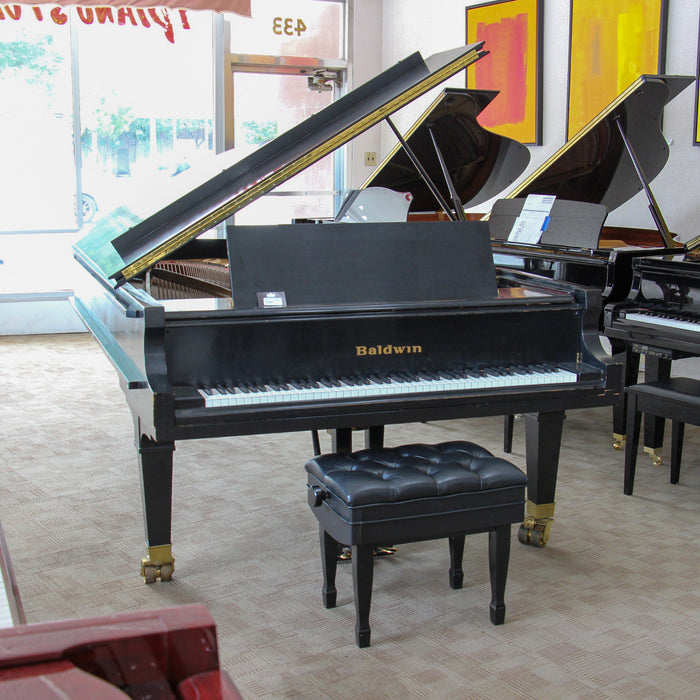 In their prime, Baldwin pianos were widely considered one of the best American pianos one could buy, and maybe the only true rival to the New York Steinway. This instrument is all original with internal parts that remain in very fine condition as if the piano was seldom used. A high-quality adjustable leather artist bench is included in the price, an $800 value. Many professional pianists and piano teachers call us asking if we have used Baldwin grand pianos for sale and we usually have to disappoint them. Equally rare are 9-foot concert grand models like this piano, by any manufacturer. Concert grand pianos like this one are not in high demand, but if you have a concert venue or church that needs one, nothing less will satisfy your piano needs.