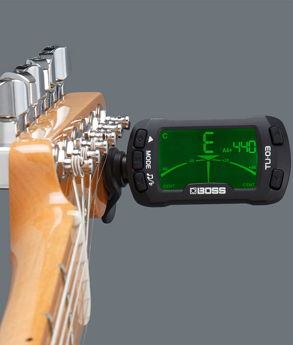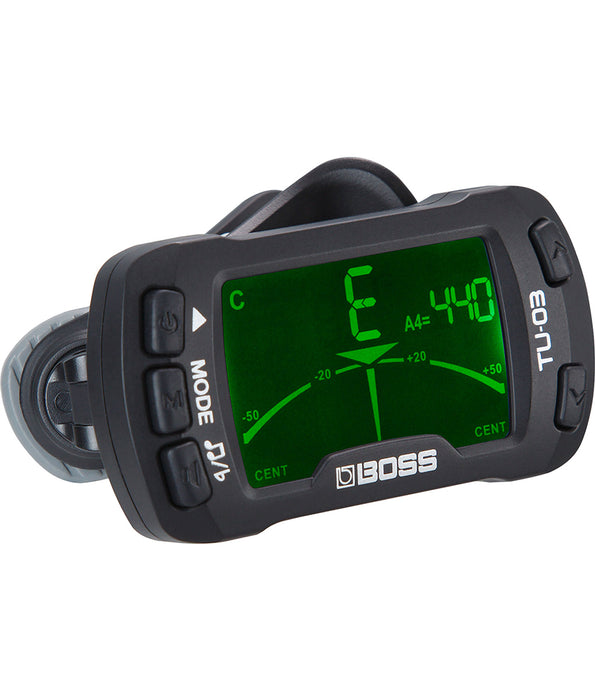 The TU-03 puts two essential music tools within easy reach. It combines a chromatic tuner and metronome in one device that clips onto the headstock of nearly any stringed instrument, providing instant-access convenience everywhere you play. Packed with deep features not typically found in clip-on units, the TU-03 offers fast and accurate tuning performance with five different modes, plus advanced metronome functionality with a built-in speaker and numerous pattern/beat variations.