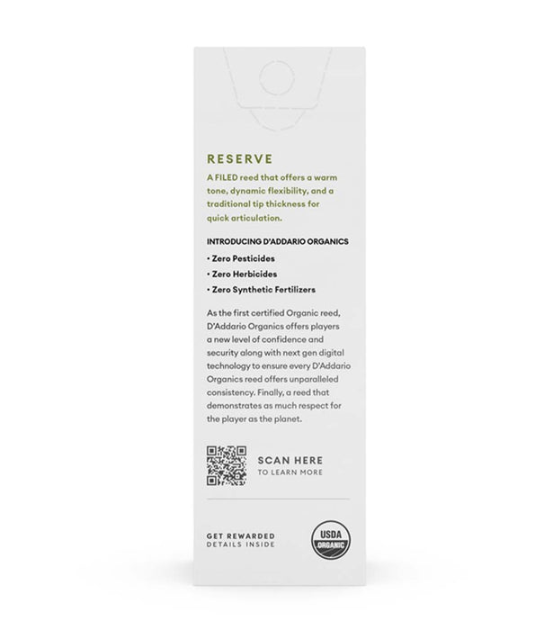 Organic Reserve reeds provide you with dynamic flexibility and exceptional, warm tone quality when playing due to their long vamp profile. These filed reeds feature a traditional tip to give you an ease of articulation and response.