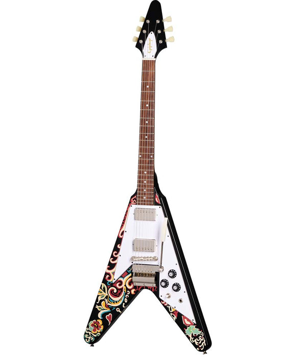 Epiphone Jimi Hendrix "Love Drops" Flying V Electric Guitar - Ebony w/ Graphic