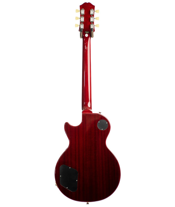 Epiphone's new Inspired by Gibson Collection presents the Les Paul Standard 50s inspired by 1950s era Les Pauls. The guitar is crafted with a mahogany body, maple cap AAA veneer, bound 50s shaped mahogany neck with long neck tenon, Indian laurel fingerboard with classic trapezoid inlays, Epiphone's new Vintage Deluxe tuners, a pair of critically acclaimed Epiphone ProBucker humbuckers, and gold Top Hat knobs with dial pointers. This Epiphone Inspired by Gibson Original model also has the Kalamazoo headstock, rolled neck for a comfortable feel, Graph Tech NuBone nut, era-appropriate wiring, and CTS pots.