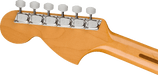 Revive the spirit of the '70s with the 70th Anniversary Vintera® II Antigua Stratocaster. The 70th Anniversary Vintera® II Antigua Stratocaster showcases our iconic Antigua finish, complemented with hand painted matching pickguard. The alder body provides classic Fender tone that's full of punch and clarity. The "U" shape maple neck is based on a classic '70s profile and offers a remarkably comfy feel, while the 7.25" radius rosewood fingerboard with vintage-tall frets provides vintage playability with ample room for big bends and expressive vibrato. Under the hood, you'll find a trio of 70th Anniversary Vintage-Style '70s Single-Coil Strat® pickups that deliver the perfect blend of warmth and bite. The vintage-style "F" stamp tuners and vintage-style hardtail bridge with block saddles ensure rock-solid tuning stability.
