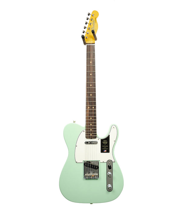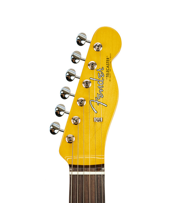 By 1963, a new combination of tonewoods married the punch and focus of alder with the warmth added by a round-lam rosewood fingerboard, enhancing the signature Tele twang. Featuring Pure Vintage '63 Telecaster pickups, triple threaded-steel saddle bridge and a comfortable "C"-shape maple neck, the American Vintage II 1963 Telecaster reproduces the quintessential tone and feel of the original. Characteristic of production in 1963, this Tele features clay dots (narrow-spaced at the 12th fret), a 7.25" radius fingerboard.