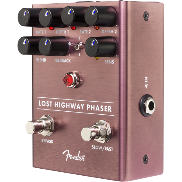 Made popular in the late-1960s and early 1970s, phasers create a sense of motion and add dimension to your sound. The Lost Highway Phaser brings powerful, flexible analog phasing to your rig. Foot-switchable Fast and Slow speeds-each with their own independent Rate and Depth controls-let you easily alternate between slow, moody phase shifting all the way to rapid and warped modulation. The Wave toggle switch selects between Sine and Triangle waveforms while switchable 4- and 8-stage phasing makes it easy to add extra resonance on the fly. The Sensitivity control allows modulation rate changes based on your playing dynamics-dig in and the intensity of the phasing increases.