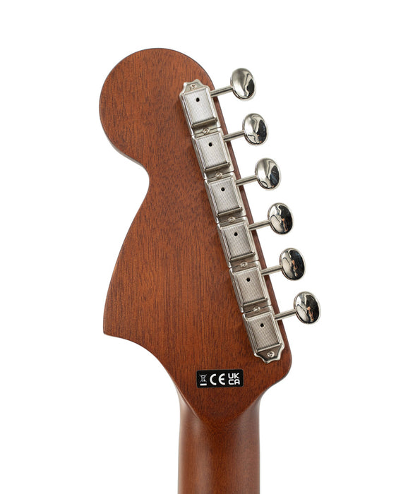 The Fender Monterey Standard was crafted from all-laminated sapele. The comfortable mid-sized concert body of the Monterey Standard has a deep, rich wood grain and produces a satisfyingly warm and balanced tone well-suited for a variety of playing styles. The easy-to-play nato neck is designed with a slim "C"-shaped profile with rounded fingerboard edges for optimal comfort, a short 24.75" scale length for low string tension, and a 6-in-line headstock for a distinctive look born from Fender's 1970s-era electric guitar DNA. The Monterey Standard also has a narrow string spacing at the bridge, ideal for players with small hands or those seeking reduced picking-hand fatigue. Other notable details include a silky satin urethane finish, vintage-style tuning machines for smooth, accurate tuning, and a GraphTech NuBone nut and saddle for detailed harmonic character. Rounding out the feature list is a Fender preamp system that allows faithful reproduction of the guitar's natural sound when plugged into an amplifier or recording device, and includes a built-in tuner for convenient on-the-fly adjustment.