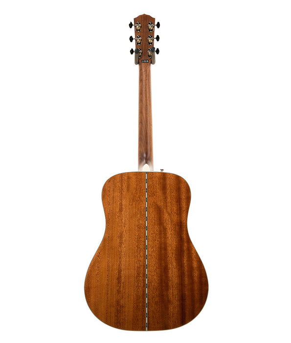 The Paramount PD-220E combines state-of-the-art craftsmanship with vintage-inspired appointments, delivering the best of both worlds. Built with the choice of a solid spruce top paired with solid mahogany back and sides, the PD-220E features an offset X-bracing pattern that has been carefully refined to optimize resonance and tone. A brand-new Fender and Fishman-designed Sonitone Plus pickup amplifies the full, balanced tone of the PD-220E's dreadnought body shape, while the soundhole-mounted controls preserve the vintage aesthetics. Under the top, a body-sensing pickup enhances the soundboard's vibrations which can then be blended with the undersaddle Sonicore pickup.