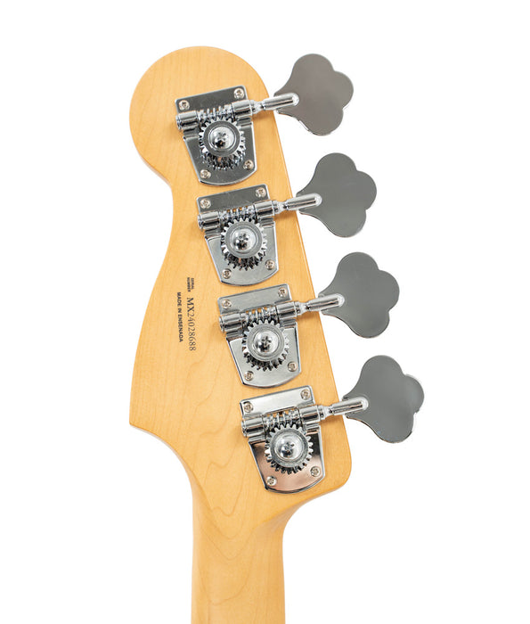 The Player II Precision Bass radiates timeless Fender charm, but under the hood, it's primed for today's players. Everything about the neck is designed for fast and fluid playability, from the Modern "C"-profile with silky satin urethane finish on the back to the comfy 9.5"-radius slab rosewood or maple fingerboard with smooth rolled edges and 20 medium jumbo frets. A classic alder body is available in both timeless Fender finishes and never-before-seen colors unearthed from the archives. Player Series Alnico V Split-Coil P bass® pickups offer sweet highs, musical mids and seismic lows that elevate any genre. An adjustable 4-saddle bridge, single-groove steel saddles and open-gear tuners ensure precise tuning stability for the flexibility to explore endless sonic possibilities.