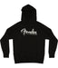 Introducing your new favorite piece, the Fender classic black hoodie with a reflective ink logo in grey. A new twist on the famous Fender logo.