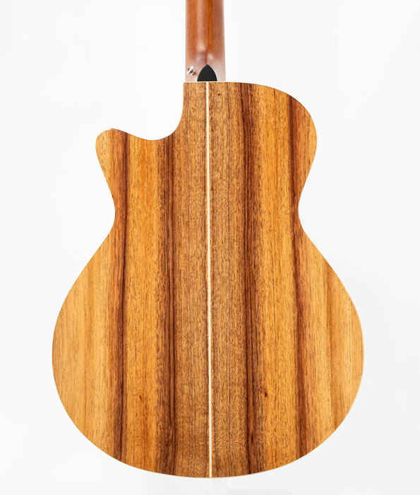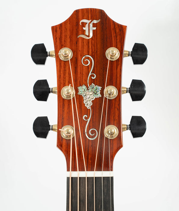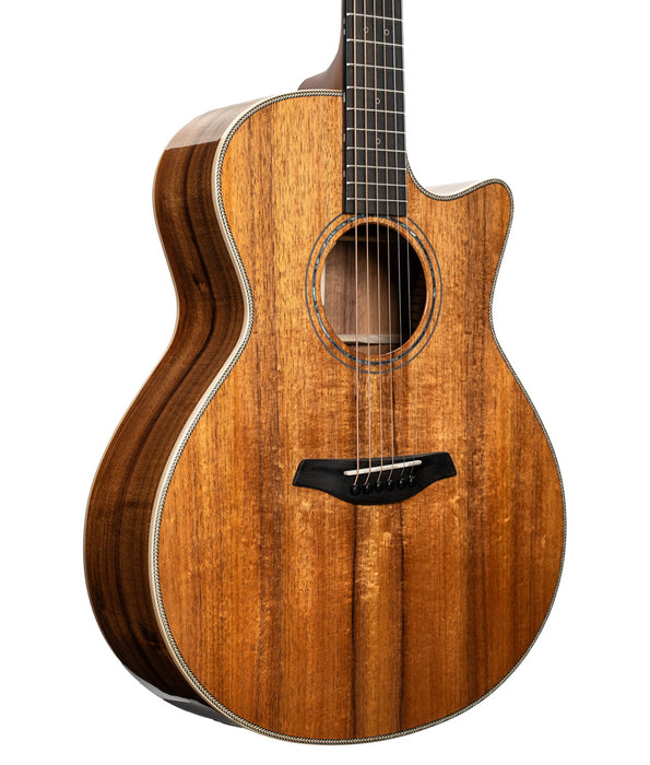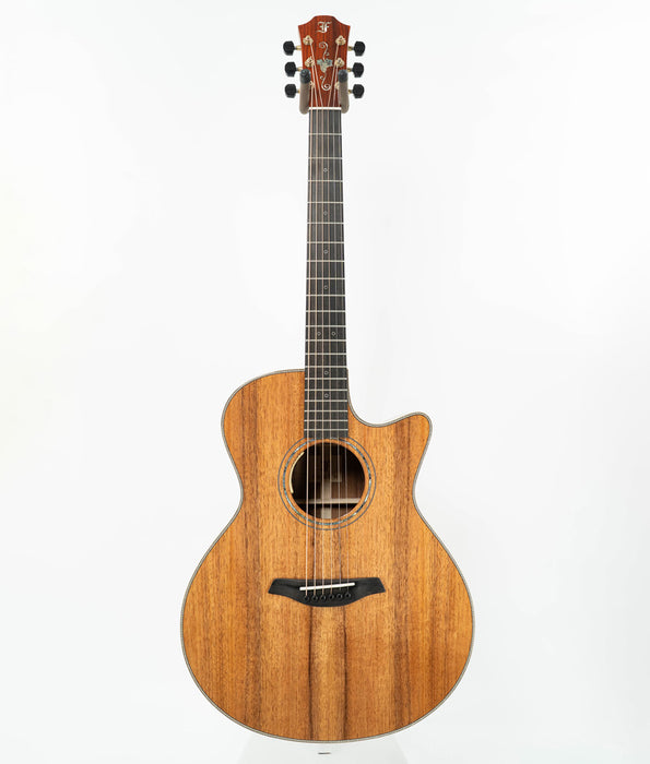This custom Rainbow Furch represents a beautiful European take on the All-Koa Grand Auditorium. With understated aesthetics, this guitar focuses on the warmth and sweetness that a top, back, and sides of Koa brings to the tone of an acoustic guitar; and with an LR Baggs Anthem already installed, this guitar is stage ready with the right look and sound.