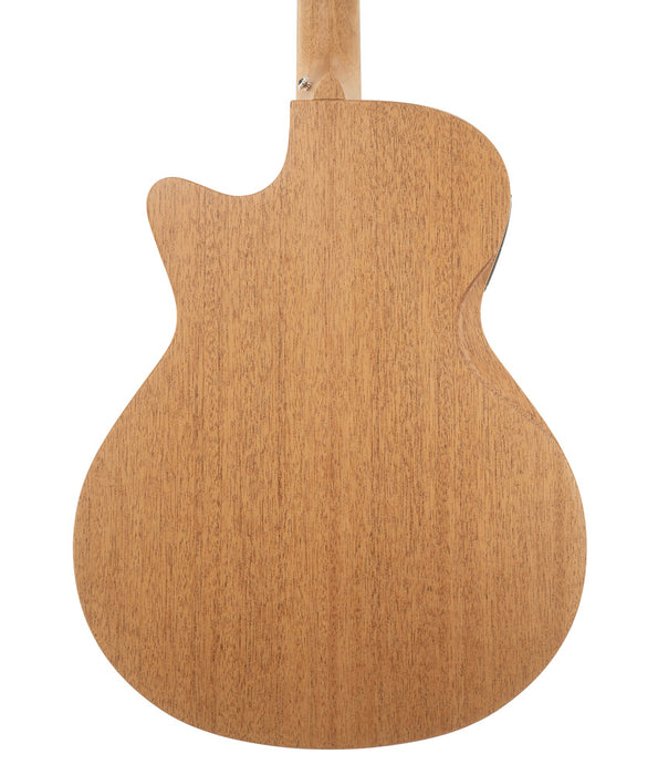 The Violet Deluxe Gc-SM does not compromise on sound or craftsmanship. The soundboard of the instrument is made of carefully selected Sitka spruce, whose excellent acoustic properties are further enhanced by our innovative individual voicing process. The back and sides are made of African mahogany. This combination gives the guitar a perfectly balanced sound with clear highs, warm bass, and long-lasting sustain, making it ideal for delicate fingerstyle as well as more aggressive flatpicking or strumming.