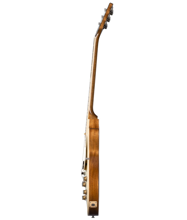 The new Les Paul Standard 60s Plain Top returns to the classic design that made it relevant, played, and loved-shaping sound across generations and genres of music. It pays tribute to Gibson's Golden Era of innovation and brings authenticity back to life. The Les Paul Standard 60s Plain Top has a solid mahogany body with a plain maple top and a Slim Taper 60s-style mahogany neck with a rosewood fingerboard and trapezoid inlays. It's equipped with a classic-style Tune-O-Matic bridge, aluminum Stop Bar tailpiece, Grover Rotomatic "Kidney" tuners, and gold Top Hat knobs with silver reflectors. The 60s Burstbucker pickups are loaded with Alnico 5magnets, audio taper potentiometers, and Orange Drop capacitors.