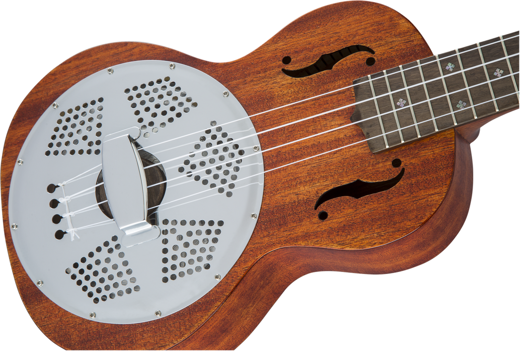With its powerful 6" "biscuit" resonator cone, Gretsch's remarkable G9112 Resonator-Ukulele makes your playing pleasingly prominent in any acoustic mix.
