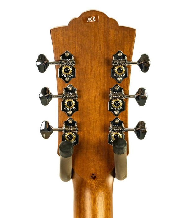 Made with a solid spruce top, mahogany sides, and arched mahogany back, the full-bodied and powerful tone of this Guild dreadnought provides guitarists with a classic acoustic sound and balanced voicing. Guild's signature arched back design allows for great volume and projection, long sustain, and a lush, full sound. The D-240E features Guild's Fishman-designed AP-1 electronics, a pau ferro fingerboard and bridge, bone nut and saddle, mother-of-pearl rosette, period-correct tortoiseshell pickguard, and a matte polyurethane finish.