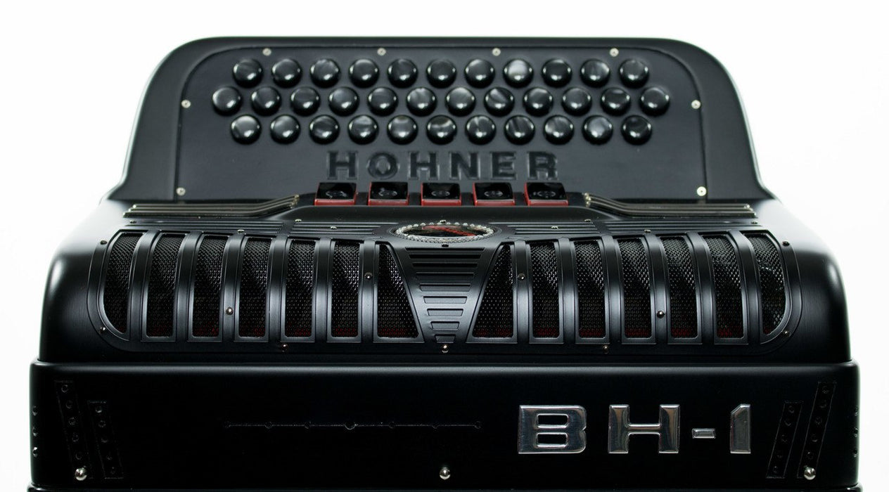 Hohner is excited to announce the new Anacleto Collection line Black Hawk I Accordion. The BH-1 has a quick response fingerboard and action buttons giving the player the feel of true professional playing. The reeds are hand made Binci reeds and is crafted to ensure the best tone. The BH-1 comes in a black matte finish with chrome lettering.