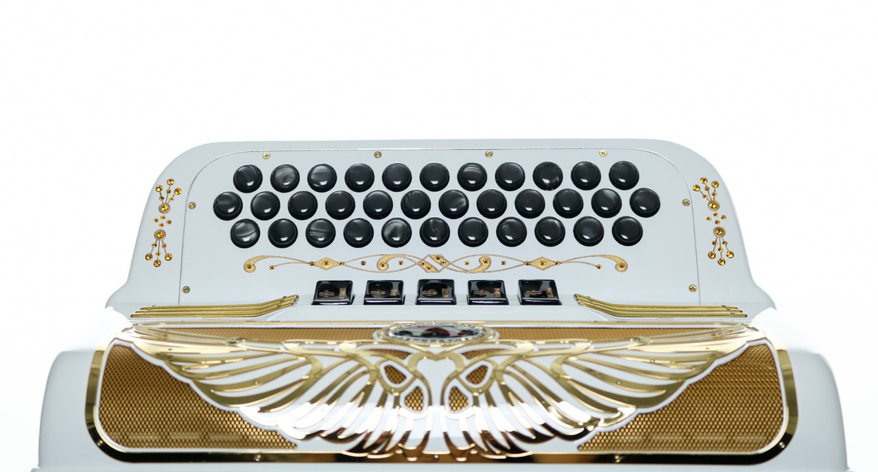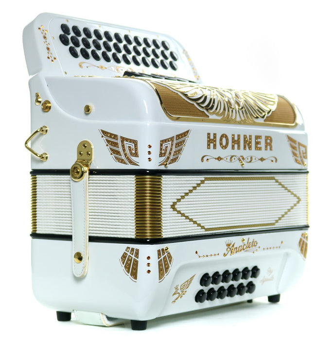 Hohner Anacleto Rey Aguila 5S FBbEb Compact Accordion White & Gold