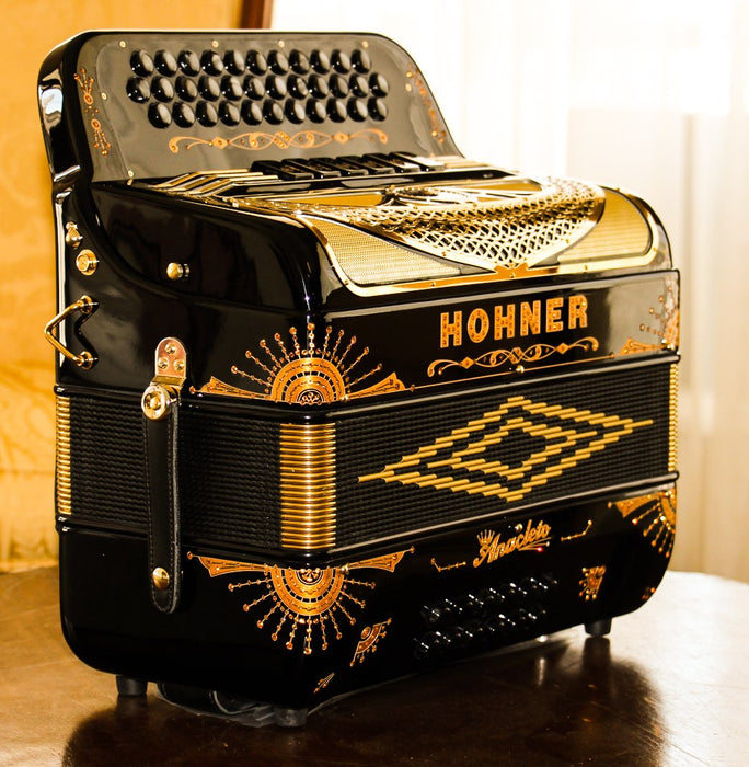 In creating the Anacleto Series, HOHNER consulted with the world's most famous artists to specifically address fingerboard dimensions, tactile feel, and smooth mechanism action for precise playing. Eduardo Hernandez of Los Tigres Del Norte commented when playing the new Anacleto Series "When I first placed my hand on the fingerboard, I could tell right away what I had in my hands without even playing it." Every Anacleto Series accordion is made using hand made (a mano) reeds of the highest quality available. Every Ancleto comes with a velvet-lined instrument case and a genuine leather strap system.