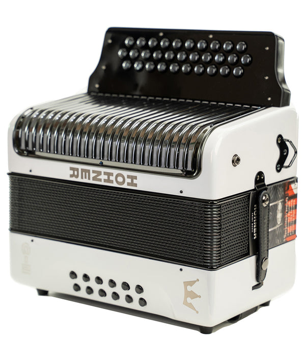 The new and improved Corona model the C-II has been modified to achieve above standard robust performance by upgrading the soundboard and baseboard with aluminum, yet maintaining the signature Corona sound that is expected from this iconic model. New features, new look, and an incredible sound - everything you expect from a professional HOHNER accordion.
