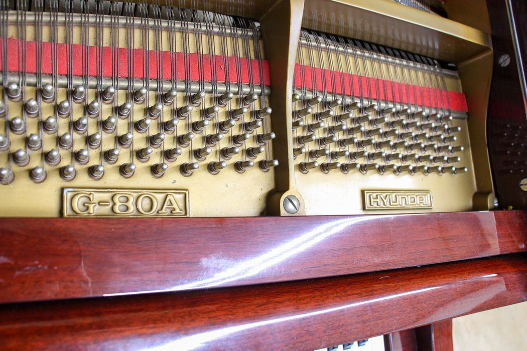 Famous for their dominance in today's piano market, Samick is the #1 selling brand in the world. They are known for incorporating German design and high quality parts in quality affordable pianos. This piano, made in Korea with the Hyundai name, in the mid 1980's, is virtually identical to the Samick SG-155 and is in immaculate condition having had almost no use. Designed by the famous German Piano Designer, Klaus Fenner, this piano features: Solid Sitka Spruce Soundboard, Full-size Direct Blow Action of hard rock maple, German Röslau Strings, German Delignit Pinblock, Royal George Hammers & German Scale Design.