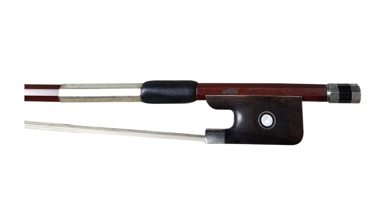 The 1003F is a quality Brazilwood J. Remy octagon bow for your full size cello. Nickel-silver winding and leather grip. Nickel-silver mounted, half-lined ebony frog with inlaid eye.