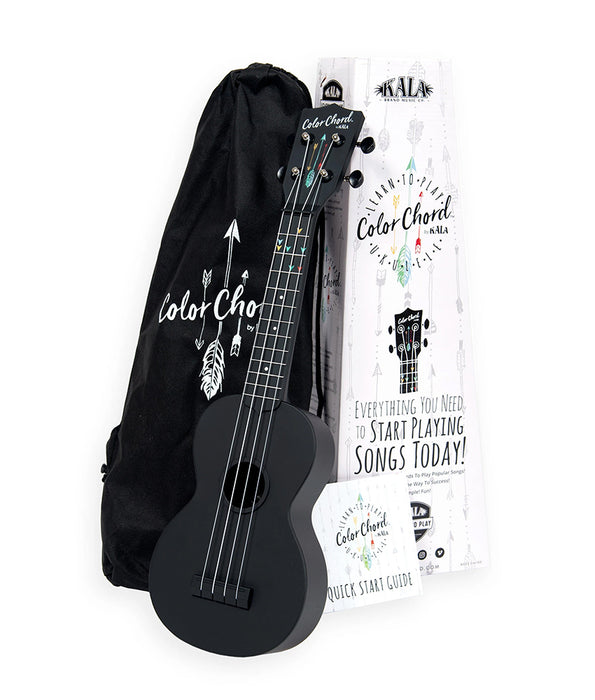 Kala's Color Chord Ukulele Starter Kit will have you playing songs right away! You'll learn 4 Color Chords that will have you playing 100s of songs in no time. There are three ways to learn: you can use the Kala Ukulele app, our online lessons, or the quick start guide included in the pack.