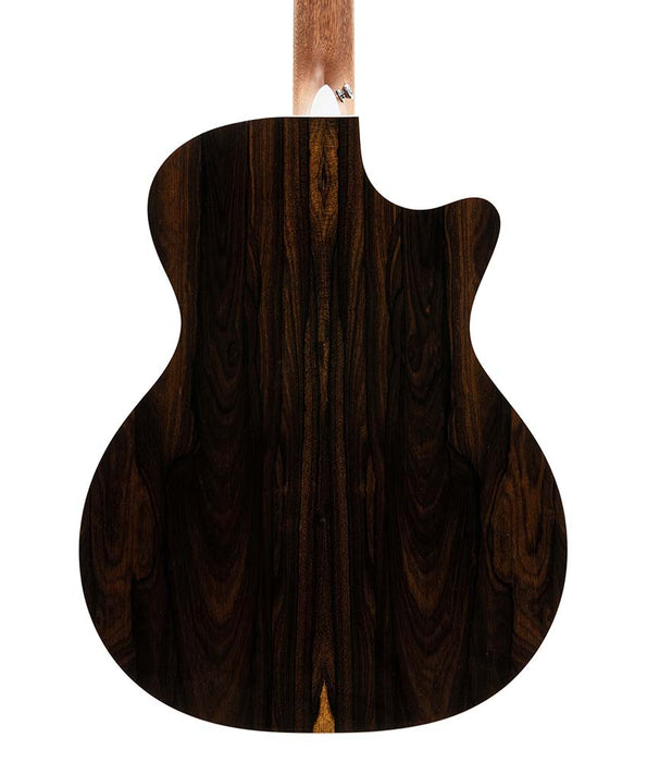 The GPC-13E features a gorgeous glossed Sitka spruce top and ziricote back and sides. This solid wood Grand Performance cutaway model is a great sounding guitar at an affordable price. New to this model are stunning mother-of-pearl pattern fingerboard and rosette inlays, a multi-stripe rosette border, and white binding. It has an FSC Certified Richlite fingerboard and bridge, gloss body, and a hand-rubbed neck finish. Also new to this model is a Fishman MX-T electronics package with a built-in soundhole tuner that auto mutes the audio output so you can tune up any time without using a pedal.
