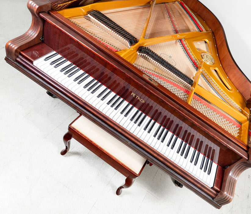 This model marries the distinctive Chippendale decorative legs and casework with Petrof's warm, singing tonal character (often described as romantic and lyrical.