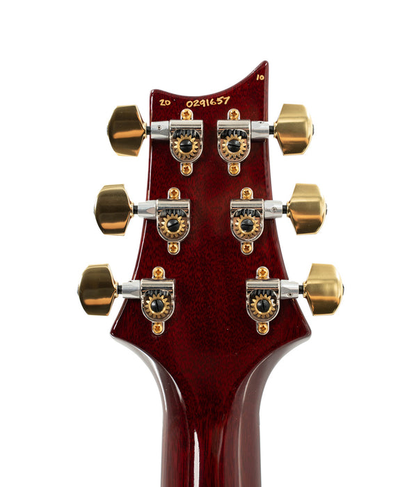 Flame Maple 10-top, Mahogany neck with a Wide-Fat profile, East Indian Rosewood fretboard with bird inlays, 58/15 LT TCI treble and bass pickups, LR Baggs/PRS Piezo pickup system, adjustable Piezo stoptail bridge, finished in Dark Cherry Sunburst, with hybrid hardware.