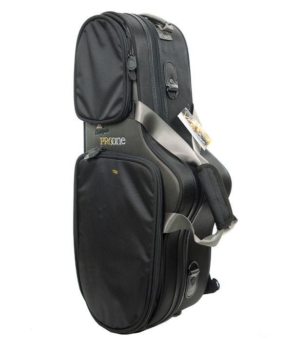 Pre-Owned Antigua Winds ProOne Alto Sax Hybrid Rolled Tone Holes Trident Key Arms Vintage Lacquer Finish Deluxe ProOne Back Pack style case.