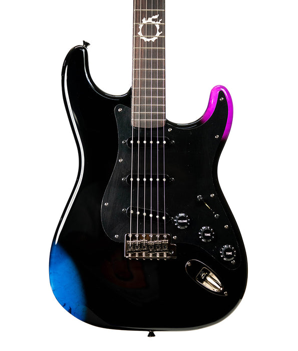 This incredibly unique Stratocaster is dressed in all black with a body that features translucent sections of blue and purple "crystals" designed to mirror Crystals of Darkness and Light, key thematic elements of the game.