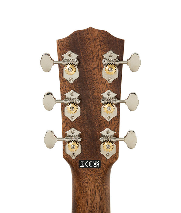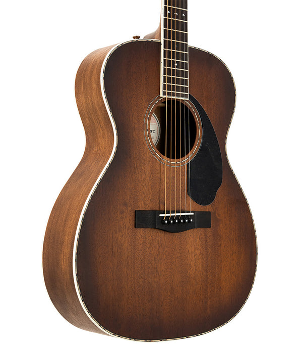 The Paramount PO-220E, built with a solid mahogany top paired with solid mahogany back and sides. The PO-220E features an offset X-bracing pattern that has been carefully refined to optimize resonance and tone. A Fender and Fishman-designed pickup amplifies the warm, mid-focused tone of the PO-220E's newly designed orchestra body shape, while the soundhole-mounted controls preserve the vintage aesthetics. Under the top, a body-sensing pickup enhances the soundboard's vibrations which can then be blended with the undersaddle Sonicore pickup.
