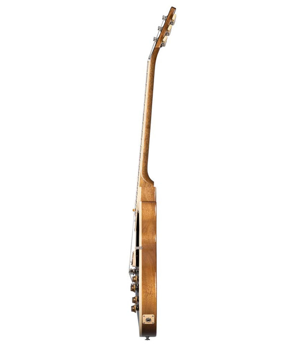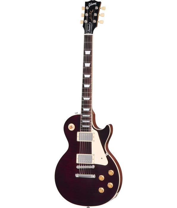 The Les Paul Standard 50s Figured Top returns to the classic design that made it relevant, played, and loved-shaping sound across generations and genres of music. It pays tribute to Gibson's Golden Era of Innovation and brings authenticity back to life. It boasts a solid mahogany body, an AA figured maple top, and a distinctive translucent custom color nitrocellulose lacquer finish that showcases the figured maple top. The mahogany neck has a rounded 50s Vintage profile and a rosewood fingerboard with trapezoid inlays. The Les Paul Standard 50s Figured Top is equipped with an ABR-1, the classic-style Tune-O-Matic bridge, an aluminum Stop Bar tailpiece, Vintage Deluxe tuners with Keystone buttons, and gold Top Hat knobs. The calibrated Burstbucker 1 (neck) and Burstbucker 2 (bridge) pickups are loaded with Alnico 2 magnets and wired to audio taper potentiometers and Orange Drop capacitors.