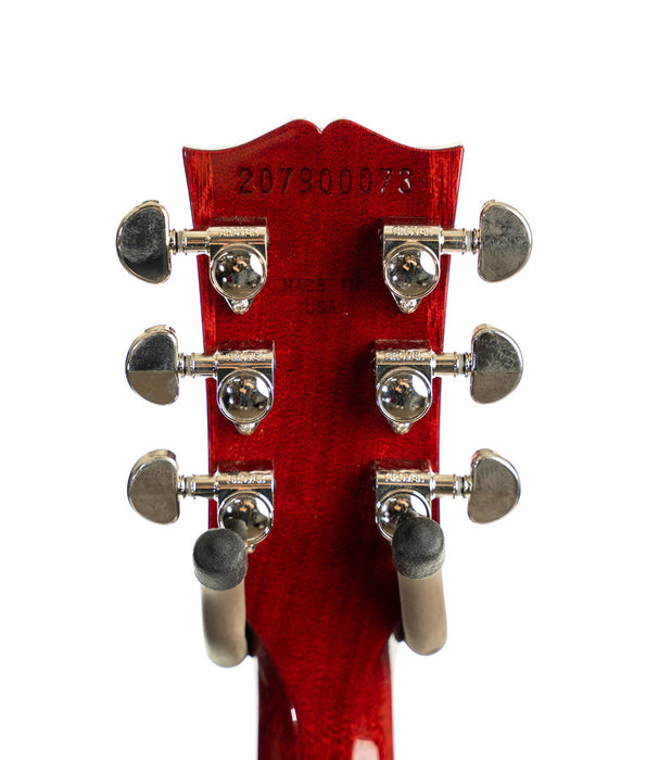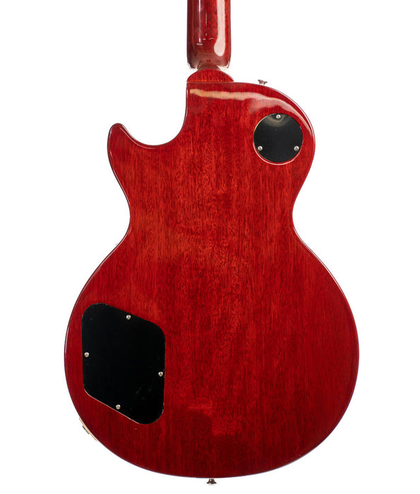The Les Paul Standard 60's has a solid mahogany body with an AA figured maple top, and a slim taper 60's-style mahogany neck with a rosewood fingerboard and trapezoid inlays. It's equipped with a classic-style Tune-O-Matic bridge, aluminum stop bar tailpiece, Grover Rotomatic "Kidney" tuners, and gold top hat knobs with silver reflectors. The Burstbucker 61R (neck) Burstbucker 61T (bridge) pickups are loaded with AlNiCo V magnets, audio taper potentiometers and orange drop capacitors.