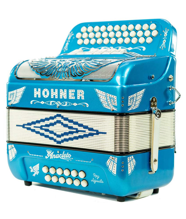Pre-Owned Hohner Anacleto Rey Aguila Two Tone FBE/GCF Compact Accordion - Blue Metallic