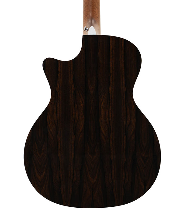The GPC-13E features a gorgeous glossed Sitka spruce top and ziricote back and sides. This solid wood Grand Performance cutaway model is a great sounding guitar at an affordable price. New to this model are stunning mother-of-pearl pattern fingerboard and rosette inlays, a multi-stripe rosette border, and white binding. It has an FSC Certified Richlite fingerboard and bridge, gloss body, and a hand-rubbed neck finish. Also new to this model is a Fishman MX-T electronics package with a built-in soundhole tuner that auto mutes the audio output so you can tune up any time without using a pedal.
