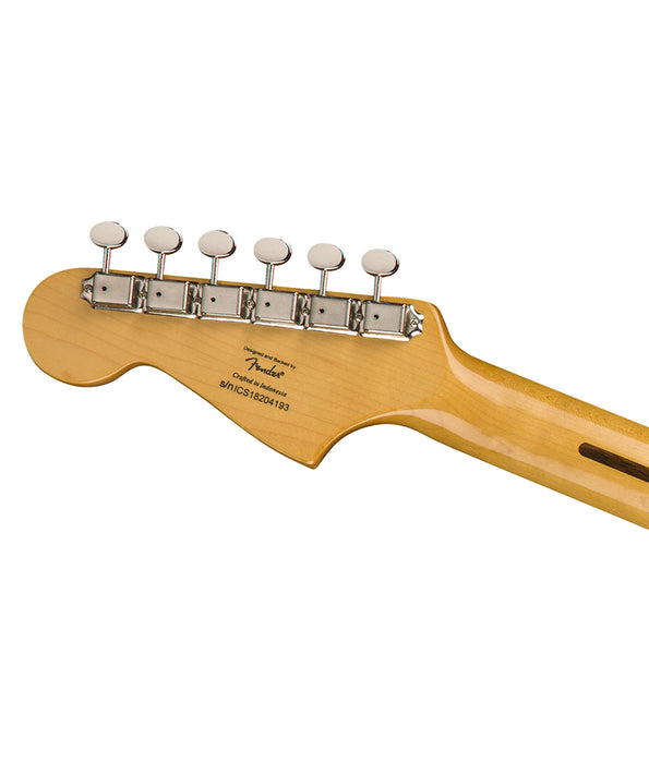 The Classic Vibe '60s Jazzmaster is a faithful and striking homage to the iconic Fender favorite, producing undeniable Jazzmaster tone courtesy of its dual Fender-Designed alnico single-coil pickups. Player-friendly features include a slim, comfortable "C"-shaped neck profile with an easy-playing 9.5"-radius fingerboard and narrow-tall frets, a vintage-style tremolo system for expressive string bending effects, and a floating bridge with barrel saddles for solid string stability. This throwback Squier model also features 1960s-inspired headstock markings, rich-looking nickel-plated hardware and a slick vintage-tint gloss neck finish for an old-school vibe.