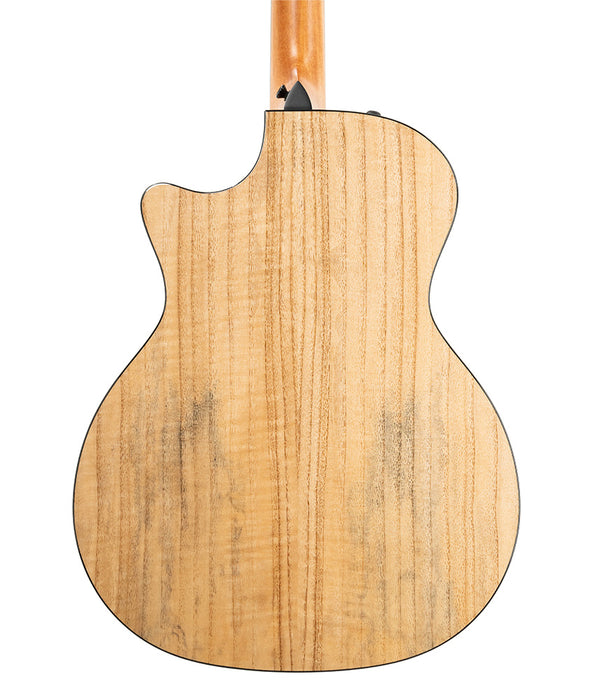 The 424ce LTD is a Grand Auditorium crafted with back, sides and top of solid Urban Ash. As a hardwood, Urban Ash delivers a natural compression effect that will sound familiar to players of mahogany or koa guitars, smoothing out the initial attack to yield a remarkably balanced profile across the frequency spectrum. This model serves up the same fundamental focus you would expect from mahogany-the note you play is the note you'll hear, and the restrained overtone response makes the 424ce LTD a superstar in recording applications. Inside, the V-Class bracing generates its trademark blend of enhanced volume and sustain, coaxing greater musicality and tunefulness from this versatile guitar. Appointments for this limited-edition model match its 400 Series counterparts and include black binding, a three-ring black rosette, Renaissance fretboard and peghead inlays in Italian acrylic, a black pickguard, Taylor satin black tuners, and a natural gloss finish that showcases the natural blonde hue and grain of Urban Ash.