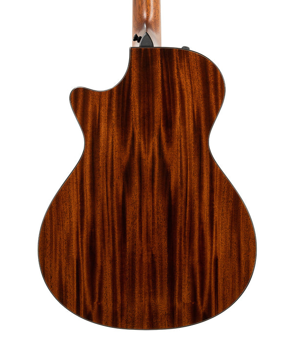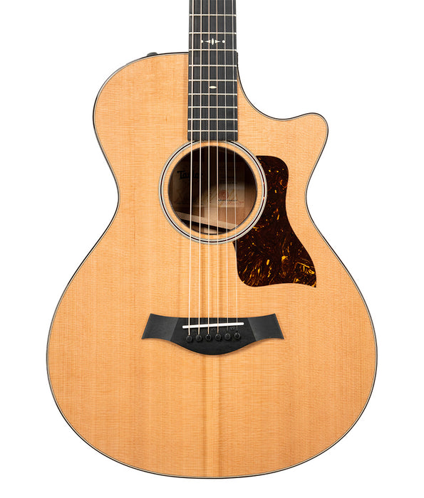 A fingerstylist's dream, Taylor's mahogany/cedar Grand Concert 512ce packs stunning warmth and midrange presence into a comfortable, player-friendly package. The smaller body and 24-7/8-inch-scale neck make for an intimate playing experience, and the cedar top responds with a wonderful midrange bloom, especially for players with a light touch. This year's edition features a move to V-Class bracing tailored for the Grand Concert shape, which pushes a surprising amount of volume from this small-bodied guitar, coupled with notes that sustain gorgeously. The new bracing design proves a perfect match for a solid cedar top, opening up greater headroom while maintaining cedar's natural touch sensitivity and warmth. An elegant cutaway opens up the fretboard, while Taylor's ES2 pickup delivers organic amplified acoustic tone. Appointments include faux tortoise shell binding and pickguard, a rosette of faux tortoise shell framed by grained ivoroid, and a grained ivoroid Century fretboard inlay.