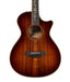 Hawaiian koa's captivating beauty is matched by a tone that blossoms over time, especially in the midrange. Its voice is bright and focused, with warm overtones that slowly emerge, adding sweetness and depth. Premium all-wood appointments, led by the Island Vine fretboard inlay, celebrate the wood's natural appeal.