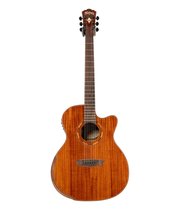 The WCG55CE is a Grand Auditorium from Washburn's Comfort Series that features Koa top, back and sides. It also features a Rosewood fingerboard and Mahogany neck with a scale length of 25.5".