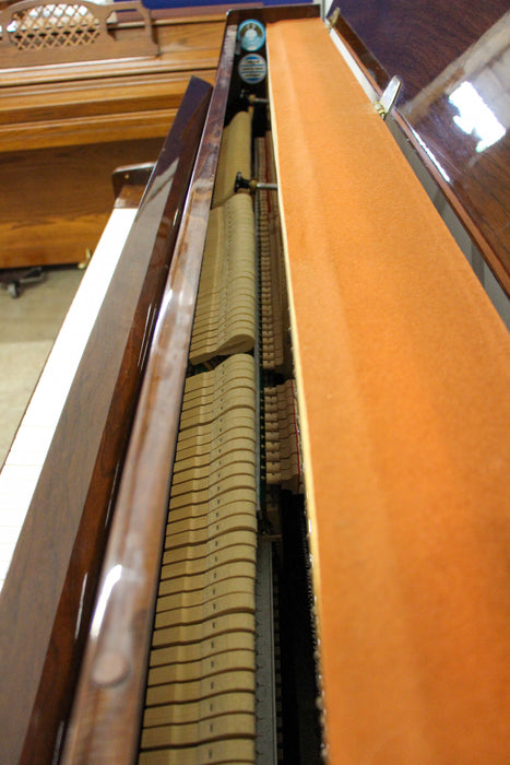 This console is ideal for a beginner to an intermediate piano student looking to upgrade from a keyboard or digital piano. This size piano is the most common of the vertical pianos sizes. Console pianos, which have a compact action (shorter hammers than a large upright has), but because the console's action is above the keys rather than below them as in a spinet, a console almost always plays better than a spinet does. Console pianos are a few inches shorter than studio models.