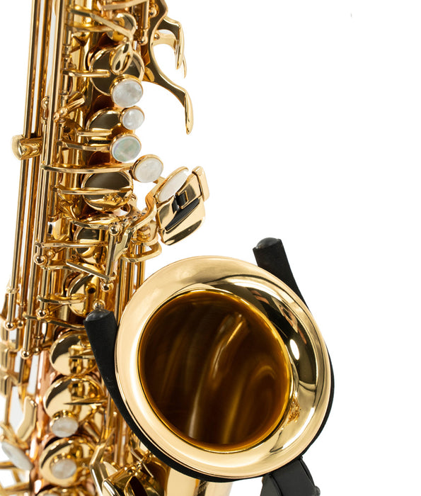 The Selmer SAS411 series of intermediate alto saxophones are designed after the professional line of Selmer Paris saxophones. The SAS411 series have incredible tonal complexity. This, combined with a hand-adjusted neck, Pisoni Pro pads, and a one-piece, hand-hammered bell create a tone that is not only the best in its class but a sound that outperforms many of its competitors. Several upgrades went into the development of this intermediate alto saxophone, including a proprietary 3-phase tone hole leveling process which ensures precisely level tone holes for long-lasting pad seating and stability. The blue steel needle springs create a light and fast key action for which Selmer is known, an adjustable thumb rest, and superior ergonomics provide everything needed for fast and demanding technical passages. Additionally, every Selmer saxophone is professionally set up, play-tested, and optimally adjusted at the Conn-Selmer Woodwind Center located in Elkhart, Indiana.