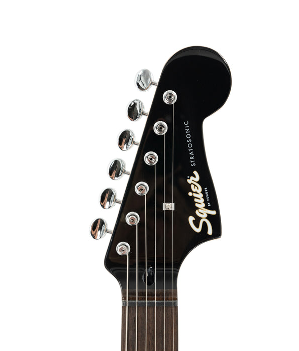 Making a comeback from its early-2000s Fender origins, the Strat-O-Sonic brings several satisfying ingredients to the Stratocaster recipe for a truly special Squier. Featuring dual Fender-Designed alnico soapbar single-coil pickups with 3-way switching, push/pull controls for series/parallel and phase switching in position 2, a short and easy-to-play 24.75" scale length and a compensated wraparound-style bridge, this Paranormal model delivers bold, new flavor to a Fender favorite. Other player-friendly details include a slim and comfortable "C"-shaped neck profile with a fast-playing 12" radius fingerboard, a gloss neck finish for a slick yet confident feel, and vintage-style tuning machines for smooth, accurate tuning.