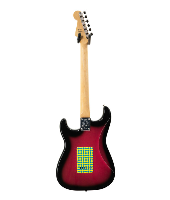 The Steve Lacy People Pleaser Stratocaster features an alder body in a subtly striking Chaos Burst finish loaded with Player Plus Noiseless single-coil pickups and a custom onboard Steve Lacy Chaos Fuzz circuit to craft a huge range of inspiring tones. For unlimited playability, the People Pleaser features a modern deep "C" neck with a 9.5" radius maple fingerboard and narrow tall frets. A touch of Steve's personal style comes by way of the custom double dice inlay at the 12th fret, neck plate engraved with Steve's original artwork, funky green/blue checker patterned back plate.